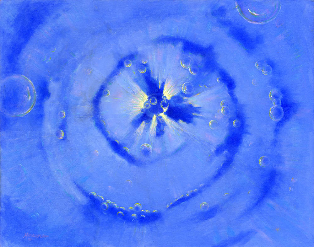 At first I thought it was odd that it had this spiral design. After I had the background and clouds done, bubbles "appeared" on the canvas - which sent me into giggles. It is perhaps my favorite painting.